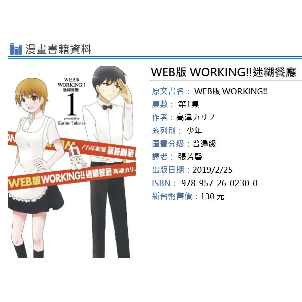永豐 東立漫畫web版working 迷糊餐廳3 全新包膜 出版日 06 01 露天拍賣